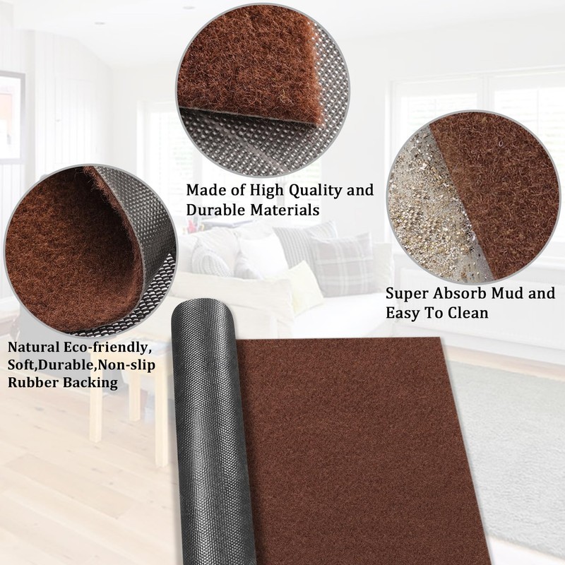 • Use Anywhere: Mats can be used to protect floors and surfaces in any environment: home, offices, lobbies, garages, patios, entryways,and more;Besides,doormats are also easy to cut, so you can use them as plant mat, as a pet place mat, or anywhere