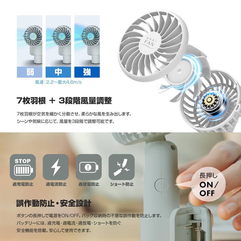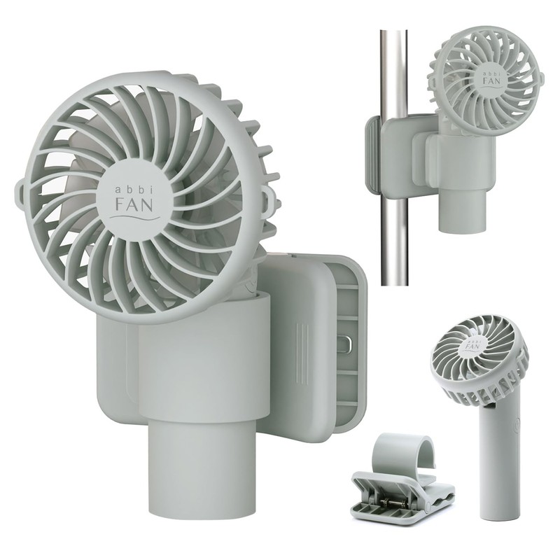 AB-DQ261GR CLIP 4-Way Parasol Compatible Clip Fan, Portable Fan, Handy Fan, 180° Rotating Head, Multi-functional Clip, Parasol, Tabletop, Neck Hanging, Handheld, Up to 9.5 Hours, 3 Air Levels, Silent