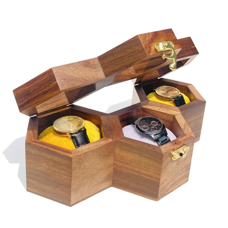 - Premium Design – Made from genuine Sheesham Wood, this watch box features a smooth, polished exterior that gives it a sophisticated, timeless look. The natural grain of the wood adds a touch of elegance to your display.