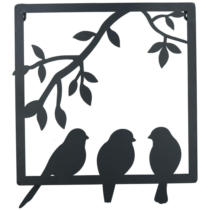 AB Tools 3 Birds on Wire Branch Wall Art Metal Frame Silhouette Garden Home Decoration