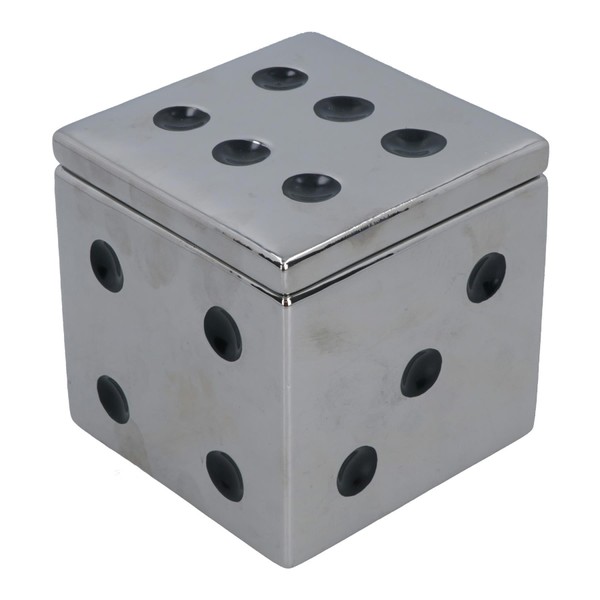 AB Tools Ceramic Dice Box Mirrored Silver Storage Trinket Jewellery House Home Decor