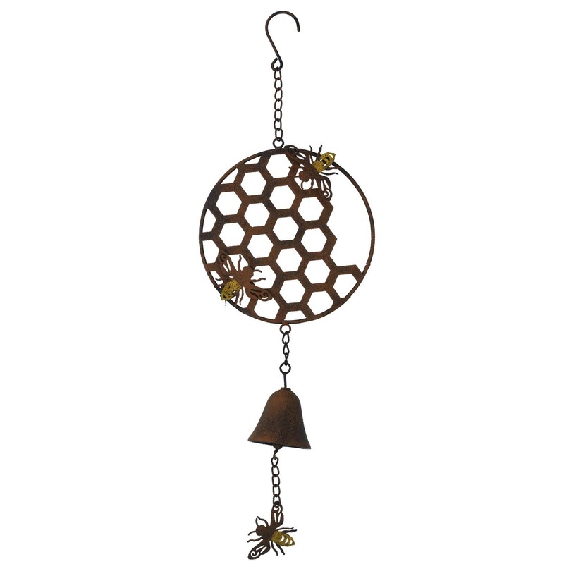 AB Tools Honeycomb Wind Chime Bee Bell Hanging Garden Yard Hex Decor Metal Wasp