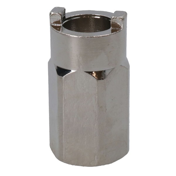 Hex shaped and used in conjunction with a 22mm socket / spanner