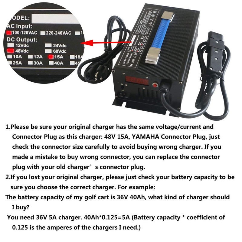 - Fully Automatic 48 Volt / 15 Amp Yamaha G19/G22 Golf Cart Charger.