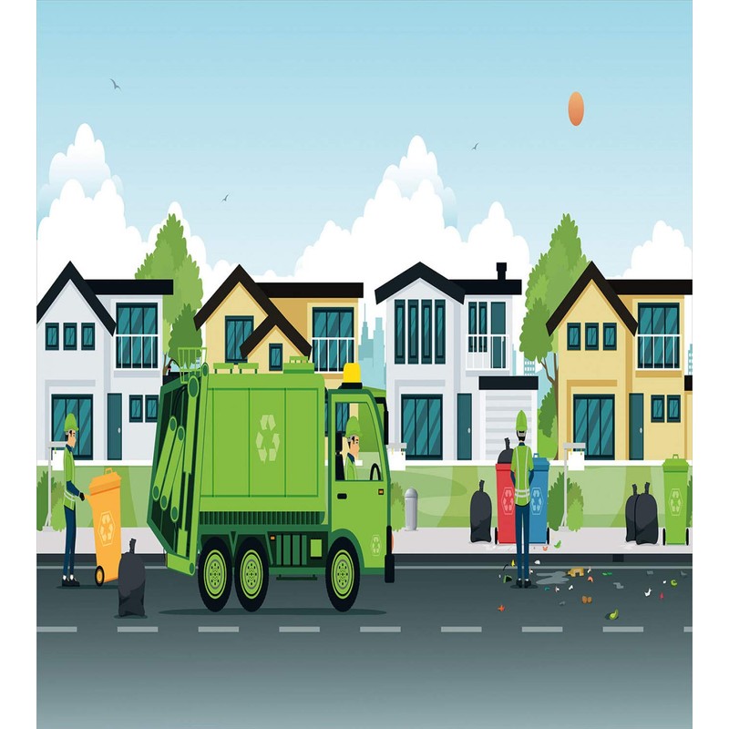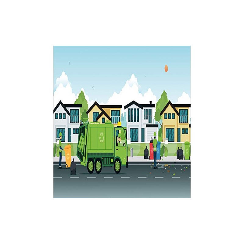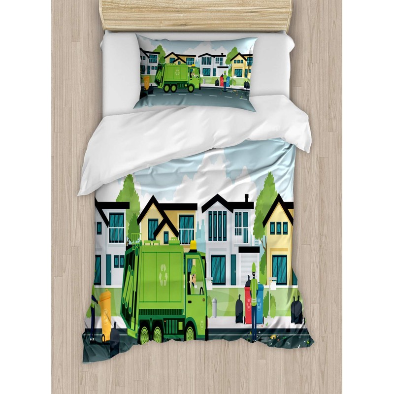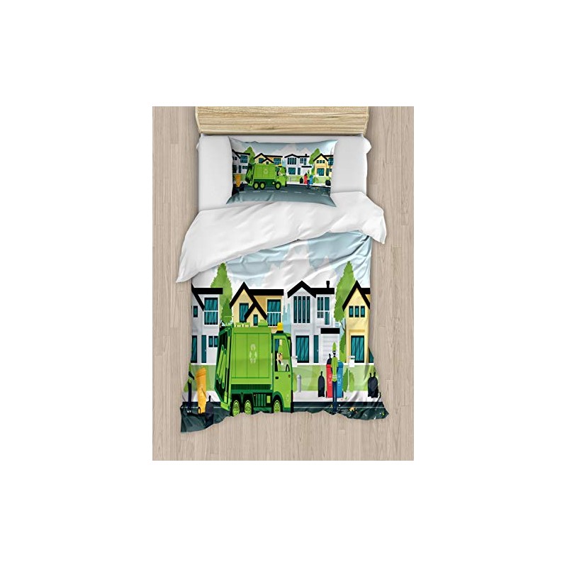 ABAKUHAUS Garbage Truck Duvet Cover Set for Single Bed, Truck on the Road and...