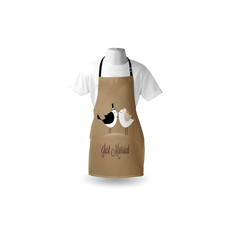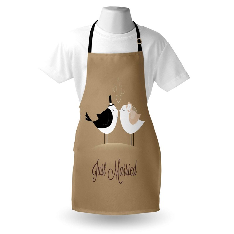 ABAKUHAUS Wedding Cooking Apron, Bride and Groom Birds Just Married, Handwrit...