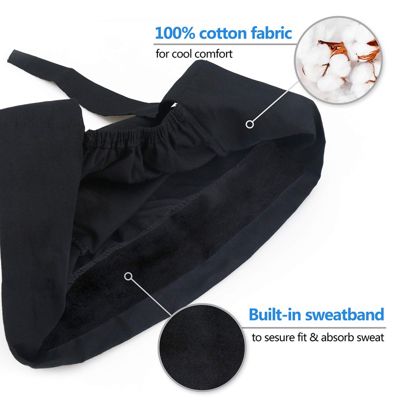 - Adjustable tieback , One Size Fits Most : The functional back tie closure and covered elastic band are artfully implemented into the design. it is a fit for no hair, short hair, and hair bun. You can simply adjust the tieback to fit in different head shapes and hair types for men and women.