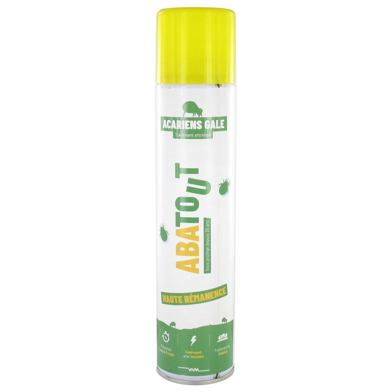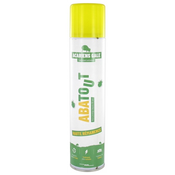 Abatout Mites Scabies Maintenance Treatment Lacquer 300ml is a killer for mites and scabies, persistant and long-lasting according to the supports, efficient up to 8 months.