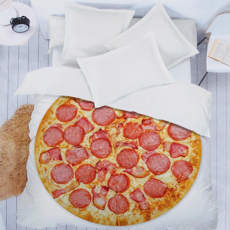 - Size and Material: This pizza blanket uses high quality flannel fabric. The non-fading, lint-free, ultra-soft funny pizza blanket can be used as a wearable blanket, sofa blanket, bed blanket, travel blanket, picnic mat and many other functional blankets. Adults are recommended to use a diameter of 60 inches.