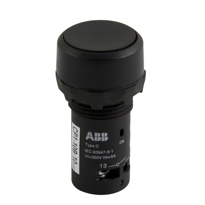 ABB CP110B-10 Push Button Operator, 22 mm, Momentary, 1 NO, Flush Operator, Black