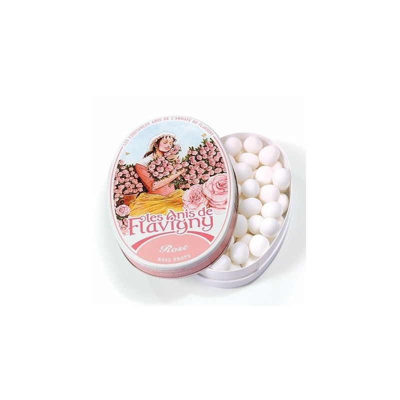 Abbaye de Flavigny Oval Traditional Tin Rose Flavored Anise drops all natural, 1.8 oz, Eight