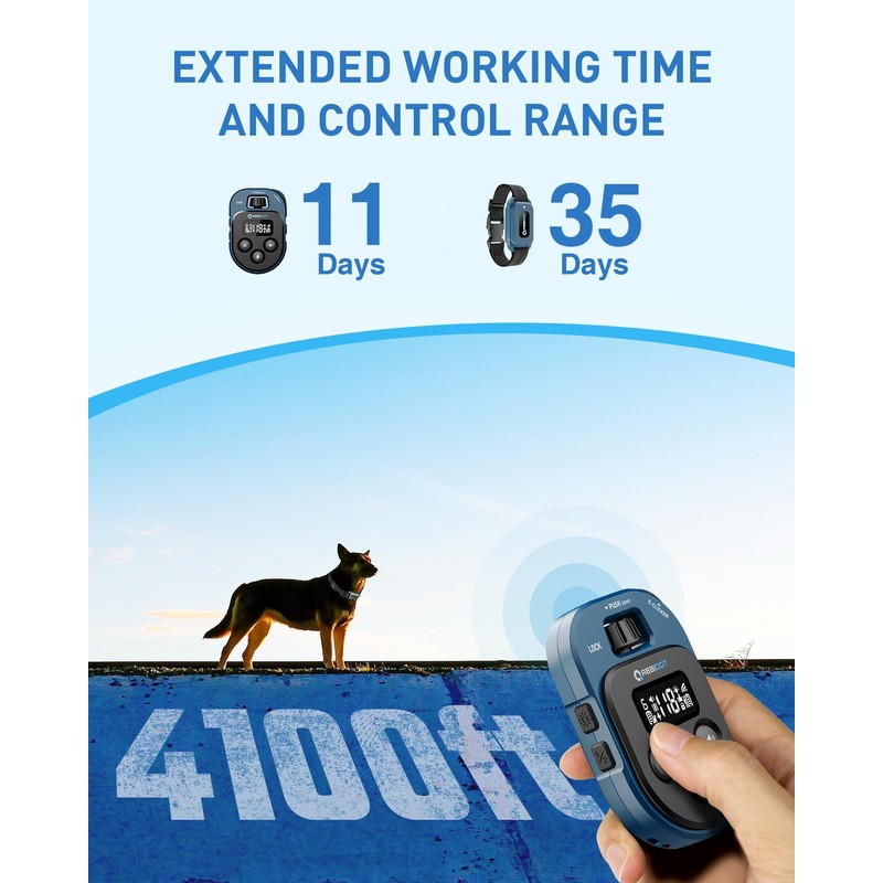 - 【Adapt to Various Training Conditions】This training collar for dogs control ranges up to 4100ft with anti-interference design, enables to train your dogs in any conditions and is engineered to withstand extreme environmental dog training conditions. Plus, both the remote and the collar is IP67 waterproof and lets you train your four-legged friend in any water condition.
