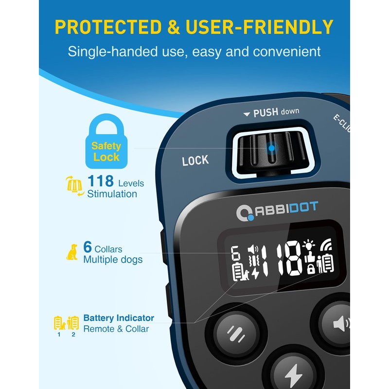 - 【2-in-1 Design for Encouragement Training】ABBIDOT E Collar T60 offers 4 efficient correction modes and E-clicker mode for close-range training skills. Cliker dog training allows you to train your dog at close range without a collar, making it easier for your dog to master the skills.