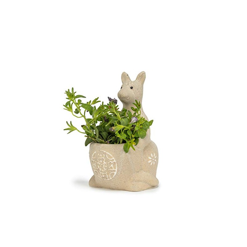 - This beige Kangaroo-shaped planter is accented with subtle white markings that add to its Australian charm