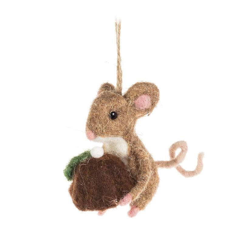 Abbott Collection Mouse with Christmas Pudding Ornament, Felt (3" H)
