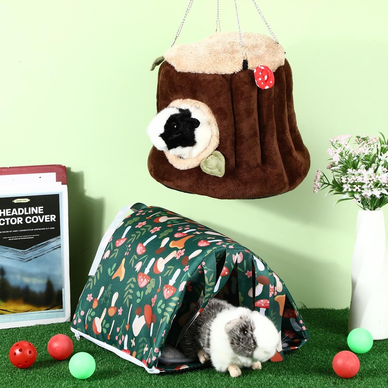 - Soft Fabric: Plush guinea pig houses and hideouts made from soft materials to care for your pet; The tunnel boasts a durable Oxford cloth exterior and sponge filling, while the stump nest features a skin-friendly flannel packed with soft PP cotton, ensuring lasting comfort and easy maintenance for your bunny hide