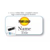 ABC BADGES AND BUTTONS 1 WHITE BLUE NAME BADGE COLOR LOGO CENTERED 2 LINES OF IMPRINT MAGNET FASTENER