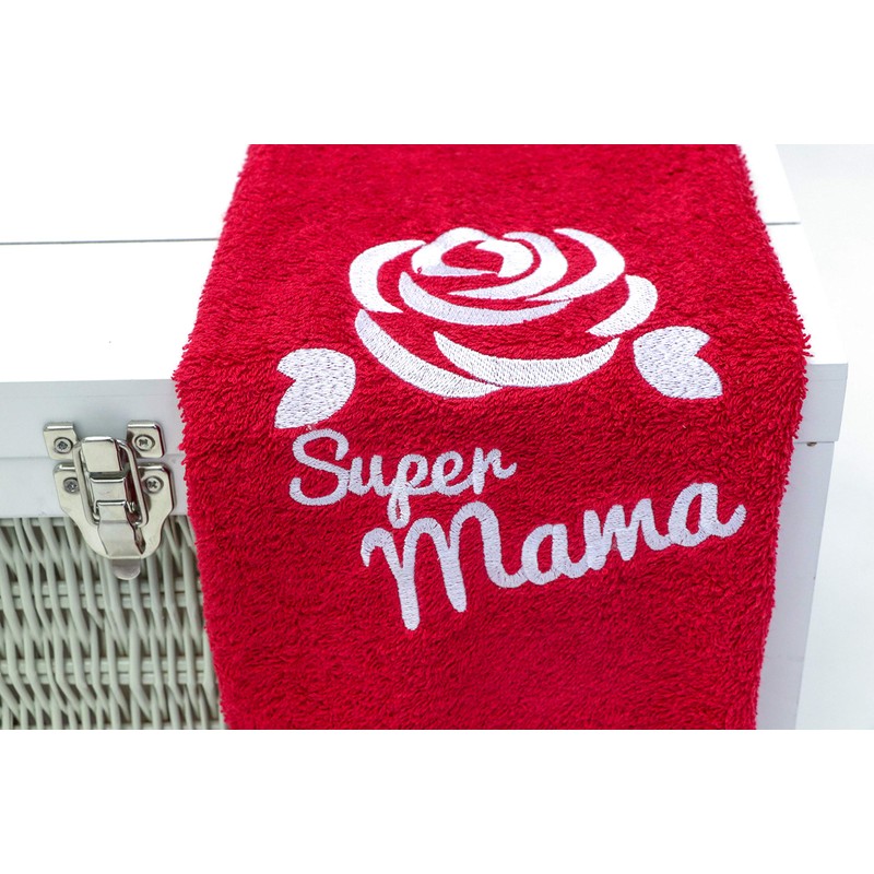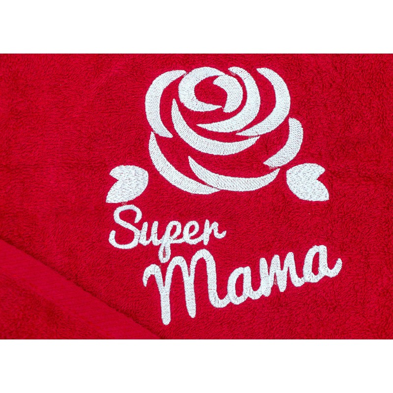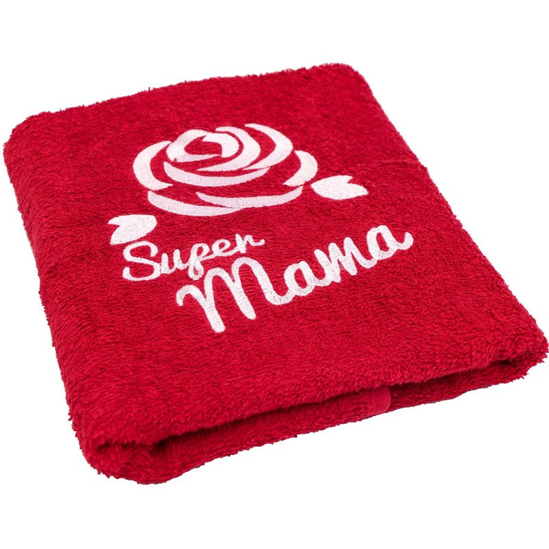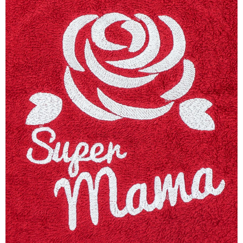 - Ein wunderschönes farbenes Handtuch mit einer sanften Stickerei der Rose und einer sorgfältig gestickten Aufschrift "Super Mama" wird sofort einen Platz in der Wohnung und im Herzen jeder Mutter finden.