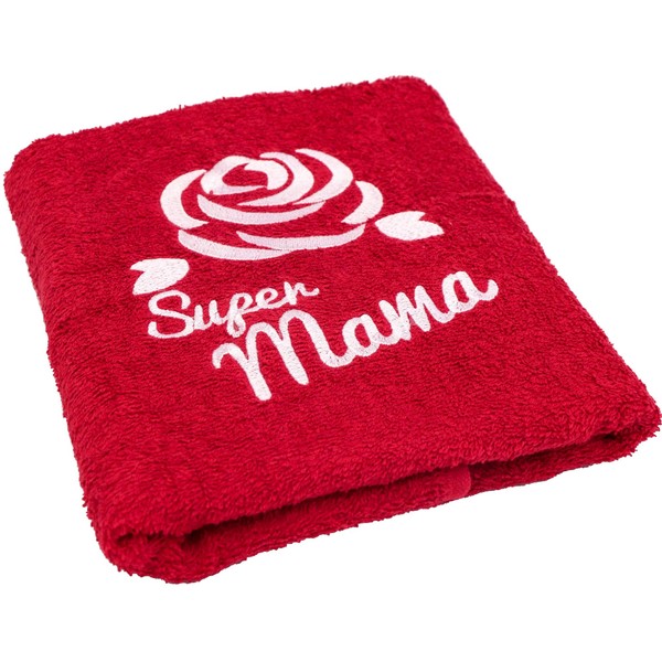 Abc Casa Geschenk zum Geburtstag für Mama oder Muttertag - Handtuch mit gestickter Rose und Super Mama - eine praktische Geschenkidee für Mutter - EIN dauerhaft nützliches Geschenk