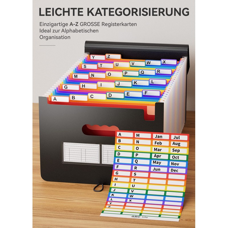 ABC life Document Folder A4 26 Compartments Expanding Folder Sorting Folder Colourful File Organiser Folder Desk Organiser Briefcase Folder Document Bag Folder Organiser with Colourful Labels