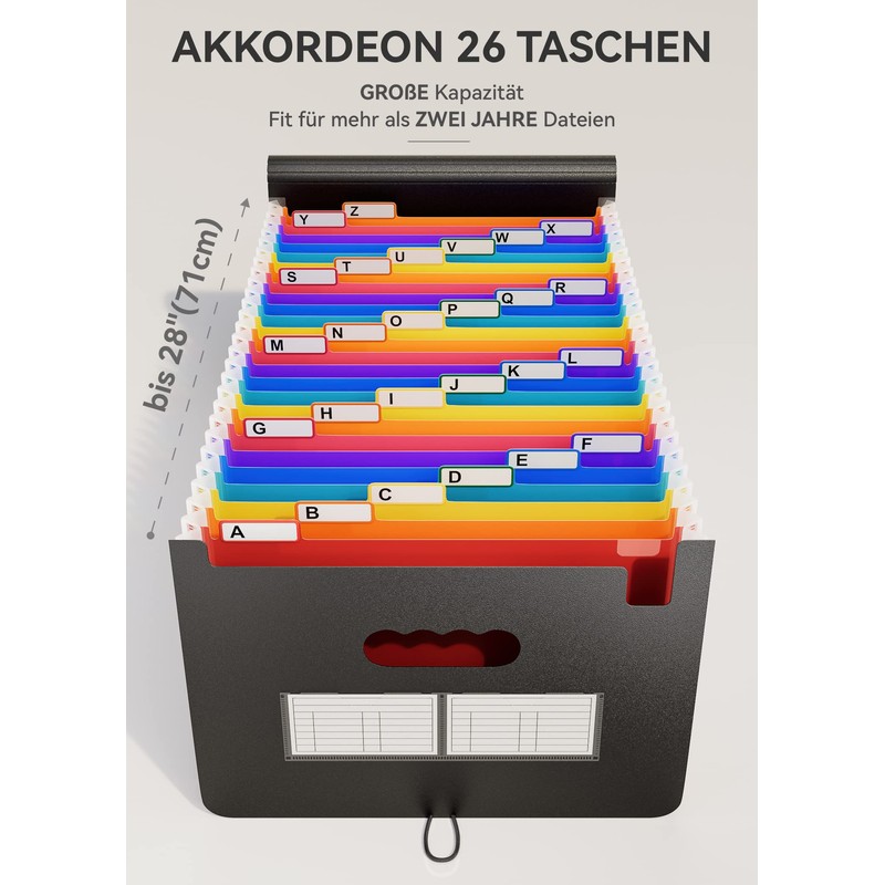 • High capacity: Our coloured folders are higher and are suitable for all A4 and letter files, while other folders are not high enough and are not suitable for letter files. 26 compartments, perfect for storing your file, hold more than 3500 sheets.