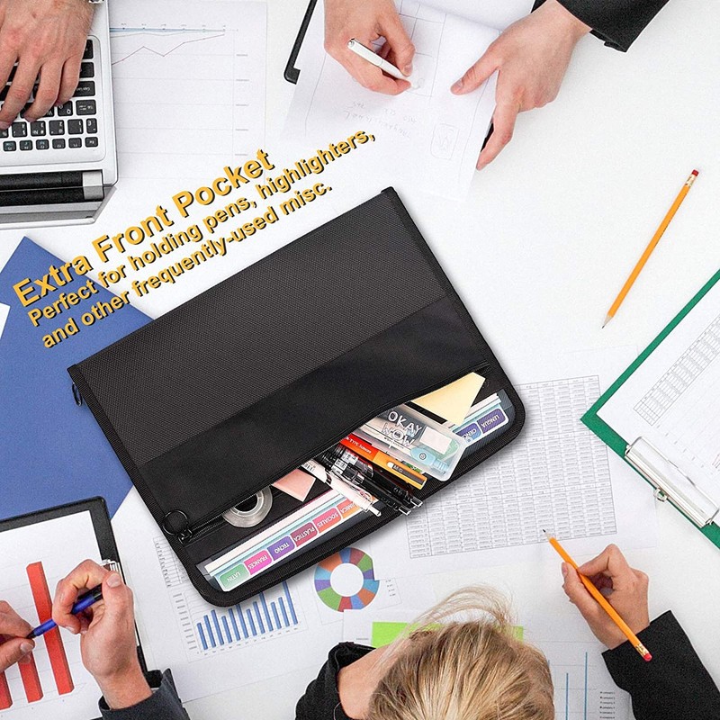 - Zip and extra front pocket: Our extended file folder has a zip design that keeps the papers inside much safer. Even small cards do not fall off, which is safe and convenient to carry. And with 3.5 inch front pocket, perfect for pens, highlighters and other frequently used things.