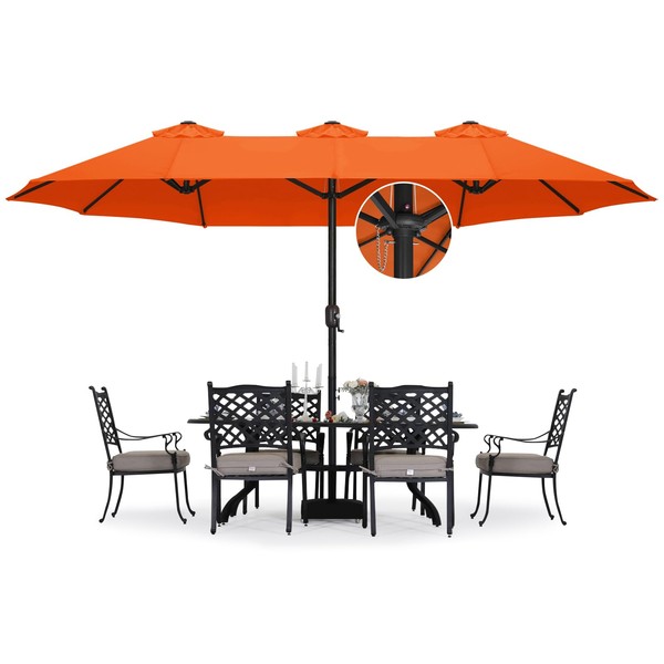ABCCANOPY 15FT Double-Sided Aluminum Table Patio Umbrella Garden Large Umbrella,Swimming Pool,Orange