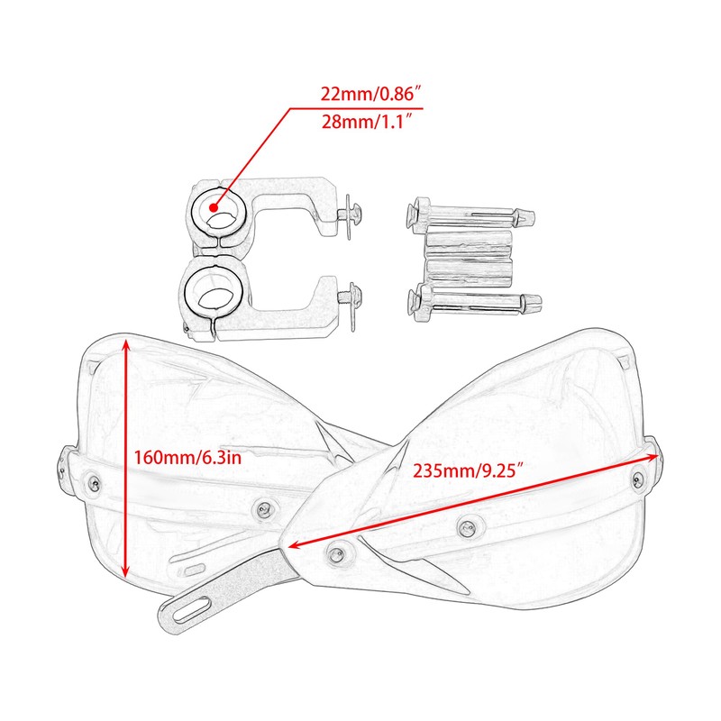 - 【Size】----Product width: 160mm/6.30in;---Installation handlebar diameter: 22mm/0.87in or 28mm/1.10in.As shown in the figure.Please pay attention to whether the size matches your needs when purchasing.
