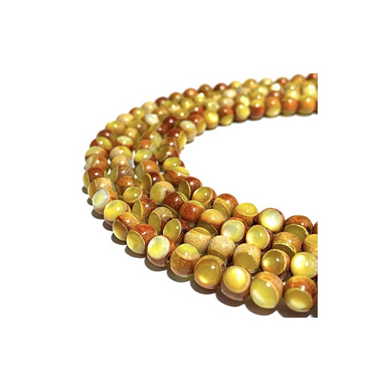 - [Approx. 28-30 Beads] Discover the perfect fusion of nature and artistry with our exotic wood beads inlaid with high-luster Australian South-Sea Golden-Lip shell. Each bead is a true masterpiece, featuring two flashy shell cabochons—one on the front and one on the back—meticulously inlaid into the smooth wooden surface. The golden hues of the South-Sea shell shimmer brilliantly under the light, creating an eye-catching contrast against the warm, natural tones of the wood. These beads are designed to add elegance, depth, and uniqueness to your jewelry creations.