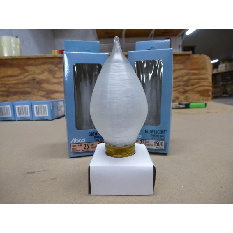 This listing is for 5 pieces of Abco Lighting 25 Watt C15 Satin Spun Post Lantern Outdoor Light Bulbs. Great for most outdoor lighting applications and perfect to use for a glowescent look in post/lantern lights. These are dimmable.  Utilizes a brass base which will not freeze or corrode in the socket.