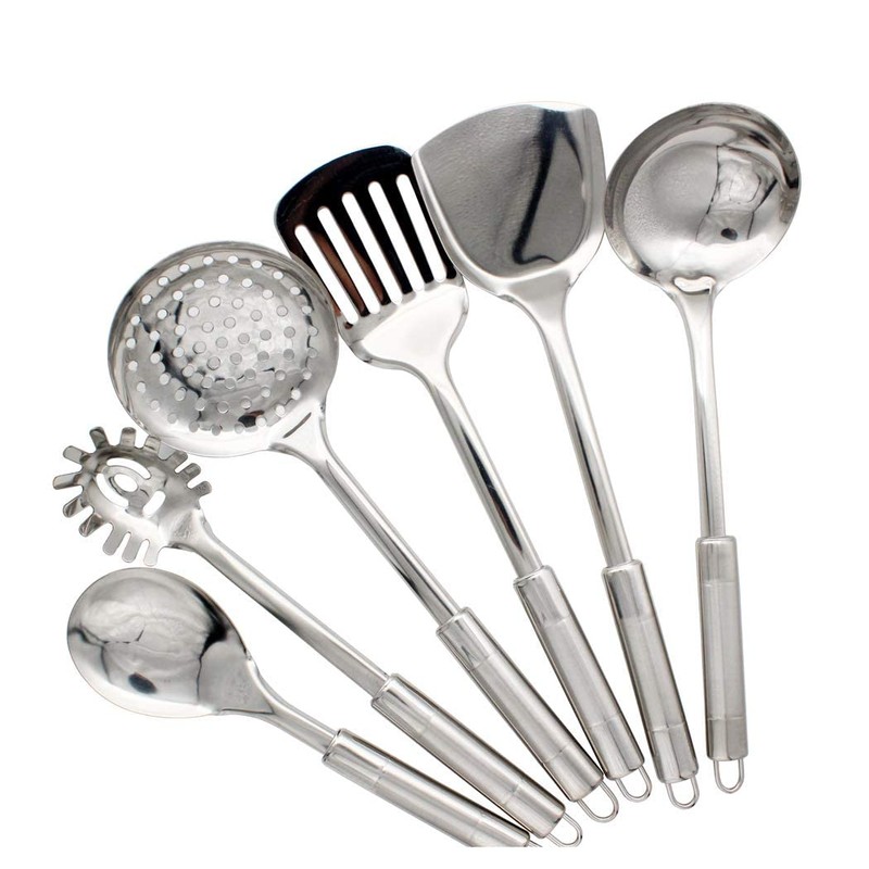 - Package: including 1 slotted turner, 1 serving spoon, 1 soup ladle, 1 full turner, 1 slotted spoon and 1 pasta server. Check the information and decide whether to choose it or not.