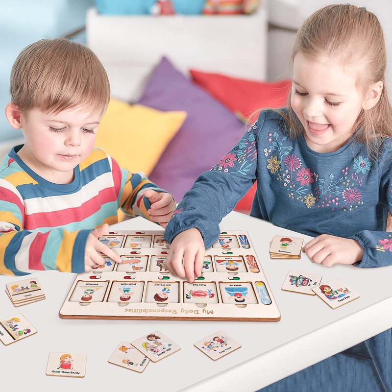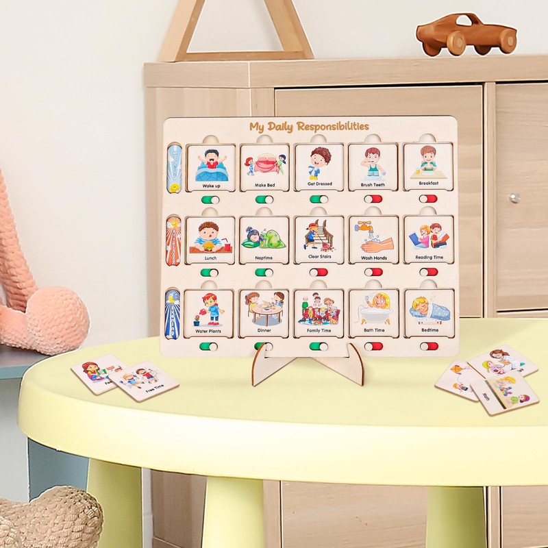- Easy to Use: Our schedule is divided into 3 levels, which can distinguish different activities in the morning, middle and evening, and intuitively display the activities of the day. The dial button at the bottom of the card slot can track the completion progress of the activities. When children participate in the schedule and complete the assigned They gain confidence, independence and a sense of accomplishment.