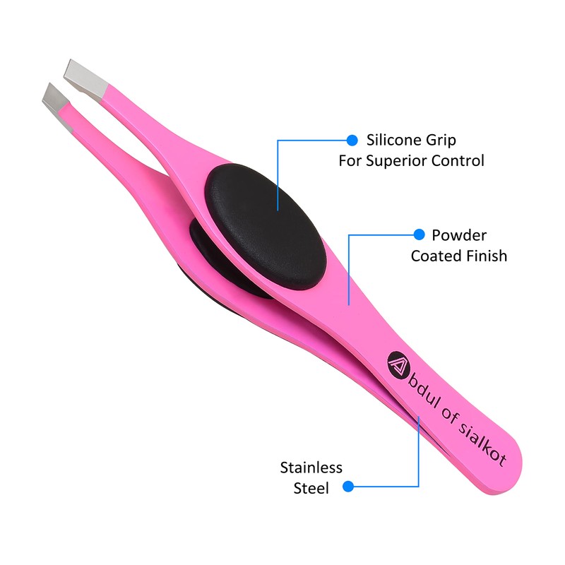 Abdul of Sialkot Tweezers for Women & Men - Tweezers Precision Engineered Stainless Steel - Fine & Ingrown Hair Tweezers, Non Slip, Sharp & Slanted Pack of 1 (Pink1)