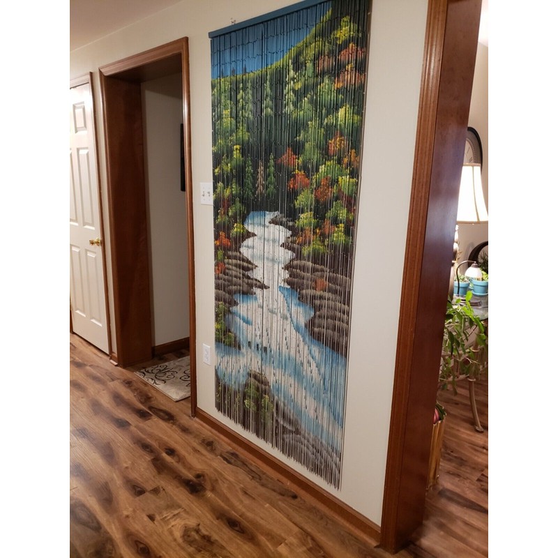 Handmade and hand painted: Each of our beaded curtains begins with approximately 2880 beads cut into 2.5" sections from natural bamboo stalks. The bamboo beads are then strung together by hand using wire to create a strand. 90 strands are then attached to a wooden hanging bar to create a bamboo beaded curtain. Finally, each bead and strand is individually hand painted producing the art you see on each beaded curtain. Since each bead is entirely painted the image is viewable on both sides of the curtain from any angle. Highest quality with 90 strands: Our hand painted bamboo beaded curtains are the highest quality beaded curtains currently being manufactured. We have been making door beads and beaded curtains since 2001 and have learned by trial, error, and customer feedback to create the perfect beaded curtain.