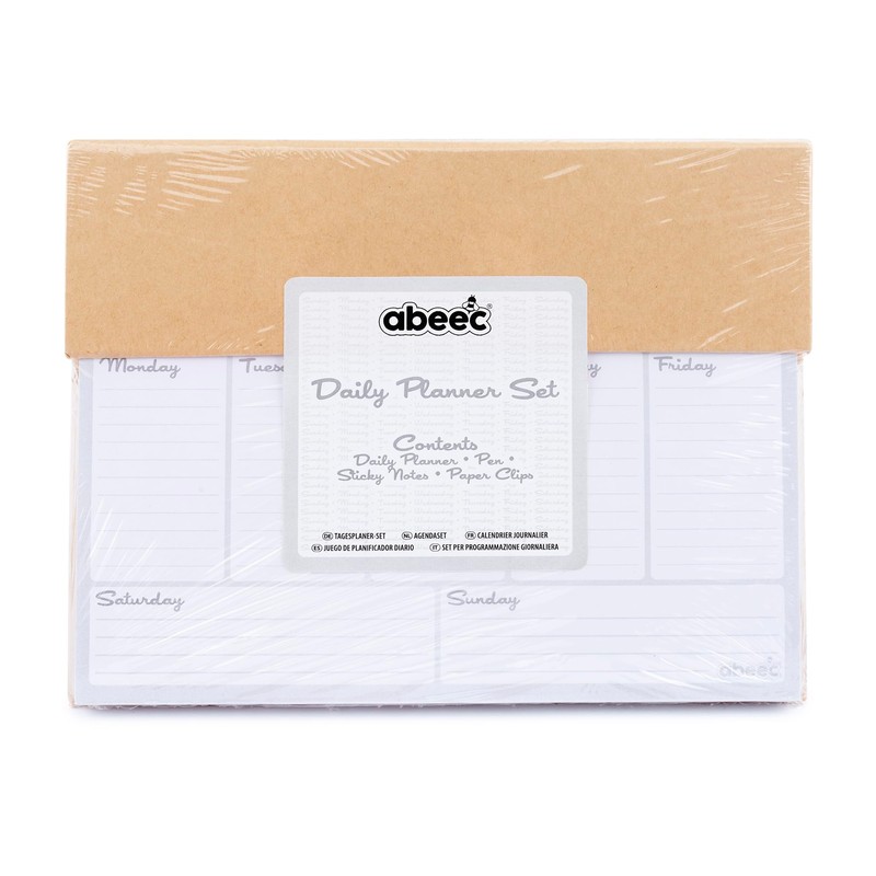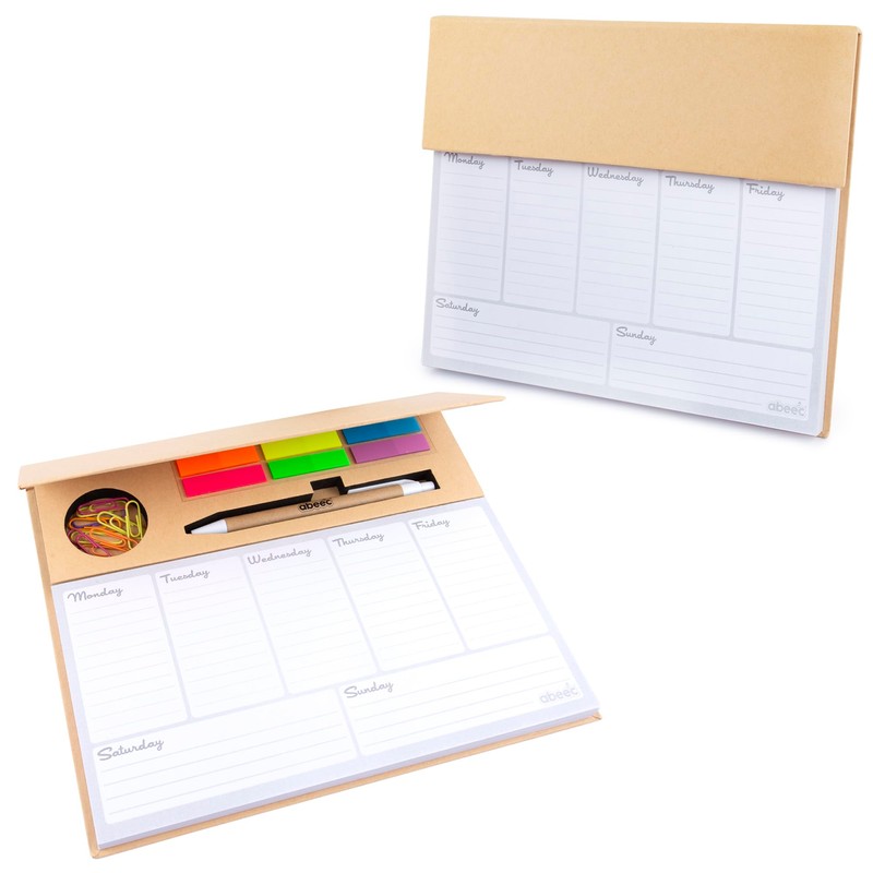 abeec Daily Planner Set, Office Stationery Supplies Includes 100 Sheet Daily Planner, Pen, Sticky Notes And Paper Clips Clips – Stylish And Portable Organization Gift Set