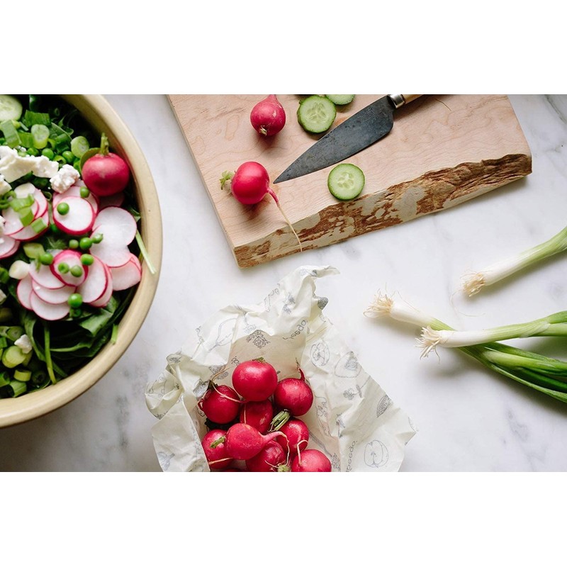 - Materials: cotton blend fabric infused with beeswax, tree resin, and organic jojoba oil.