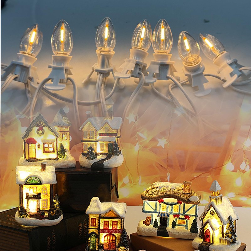 Christmas Village Lights. Designed to add a warm, inviting glow to your festive setup, these lights are perfect for creating that magical Christmas village scene right in the comfort of your home.