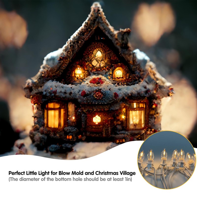 - π·ππππππππ πͺππππππ: 9.5Ft white cord with 7 LED lights bulb, Each C7/E12 lamp base comes with an adjustable metal clip that easily fits into Christmas village houses as well as a variety of crafts. Bring you a warm holiday atmosphere