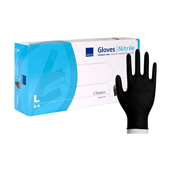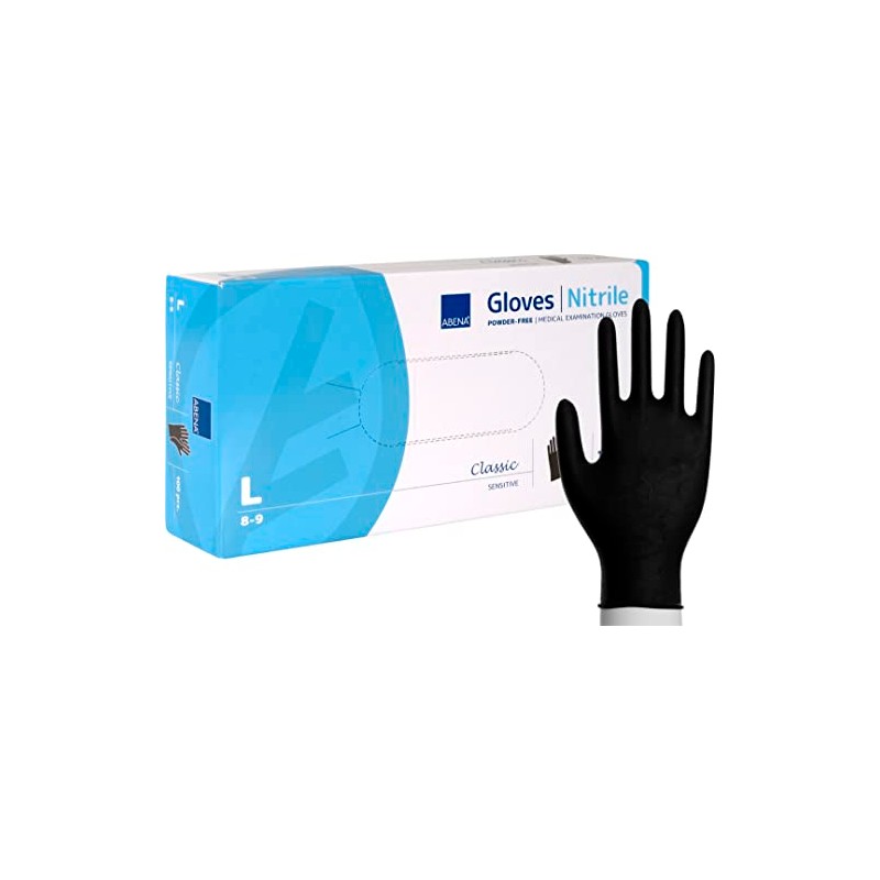 ABENA Examination gloves, Classic Sensitive, L, black, nitrile, powder free