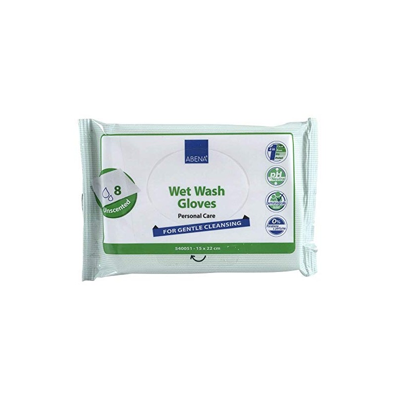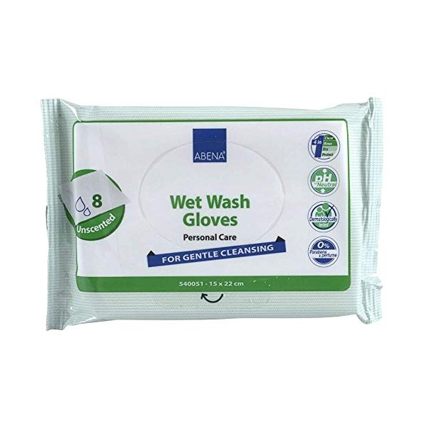 Abena Wet Wash Gloves, Pack of 8