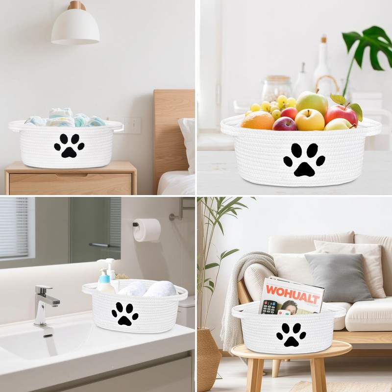 - Small Dog Paw Basket: Measures 12 x 8 x 5 inches, versatile enough to store toys, cosmetic, remotes, books, towels, toilet paper, bottles and cans,etc! Perfect for living room, nursery room, bedroom, bathroom or kitchen storage.
