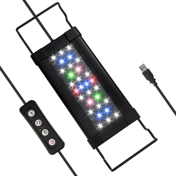 • 【USB Interface】 USB interface, Output Voltage: 5V, easy to connect, safer to use. Comes with 2M cable,which is -long enough for use. Light Board Mini Size: 18*9CM, suitable for the 30-45CM/12-18inch aquarium, ideal for small fish anks, desk fish tanks, betta tanks.