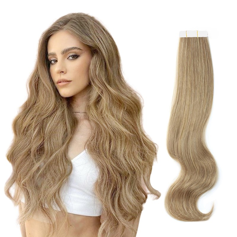 ABH AmazingBeauty Hair Semi-permanent Tape Attached Real Remi Remy 100 Human Hair Tape in Extensions 50g 20pcs Invisible Seamless Reusable Skin Weft Ash Brown Light Chestnut Brown Color 8 20 Inch
