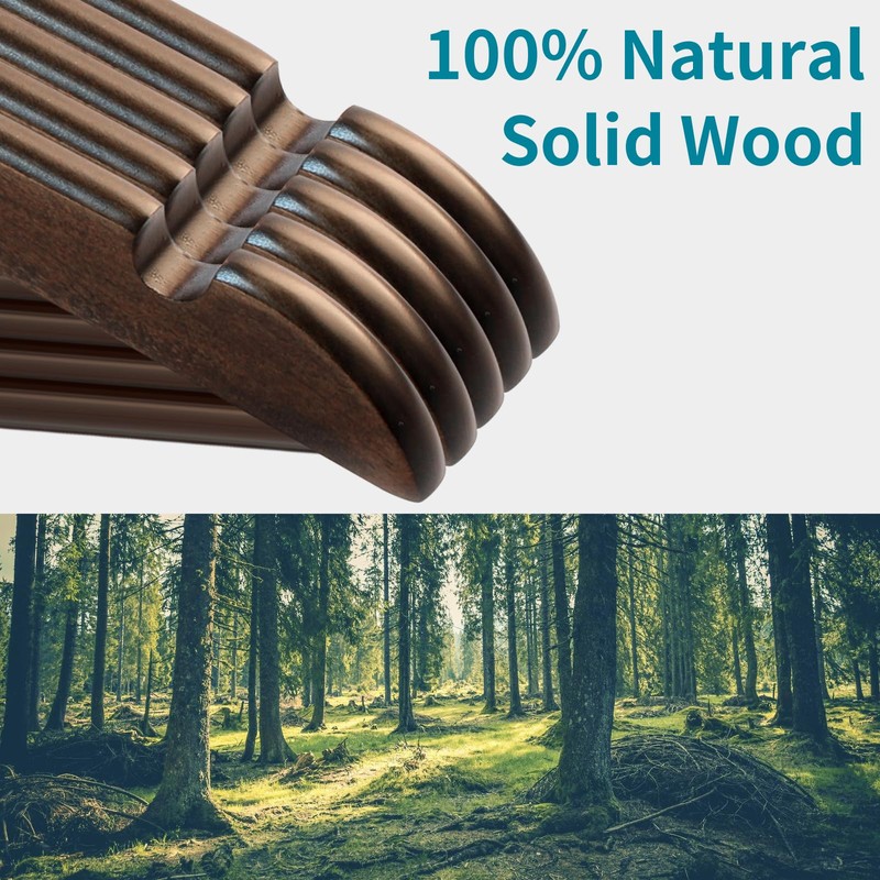 ABHENG 20 Pack Wooden Coat Hangers, 360° Swivel Hook, Suit Hangers with Anti-Slip Notches, for Jackets, Shirts, Dress, Dark Walnut, UAWY0520H