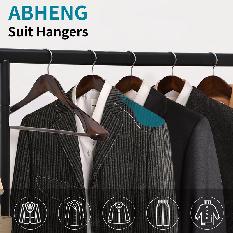 ABHENG Solid Wood Suit Hangers, 10 Pack, Coat Hangers with Non Slip Trouser B...