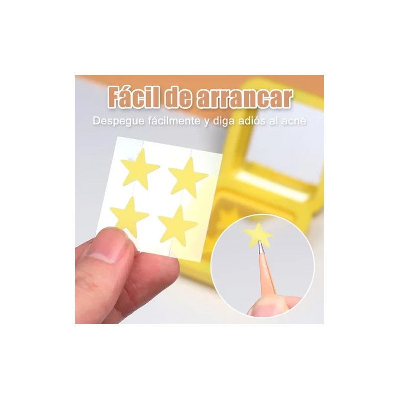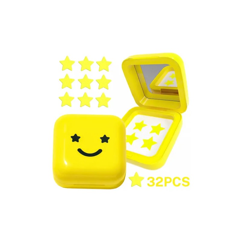 Dile adiós al acné de forma divertida y efectiva con nuestros parches hidrocoloides en forma de estrella . Este kit incluye **32 unidades** de parches amarillos diseñados para cubrir espinillas, granos y otras imperfecciones cutáneas, mientras aportan un toque de estilo único a tu rutina de cuidado facial.