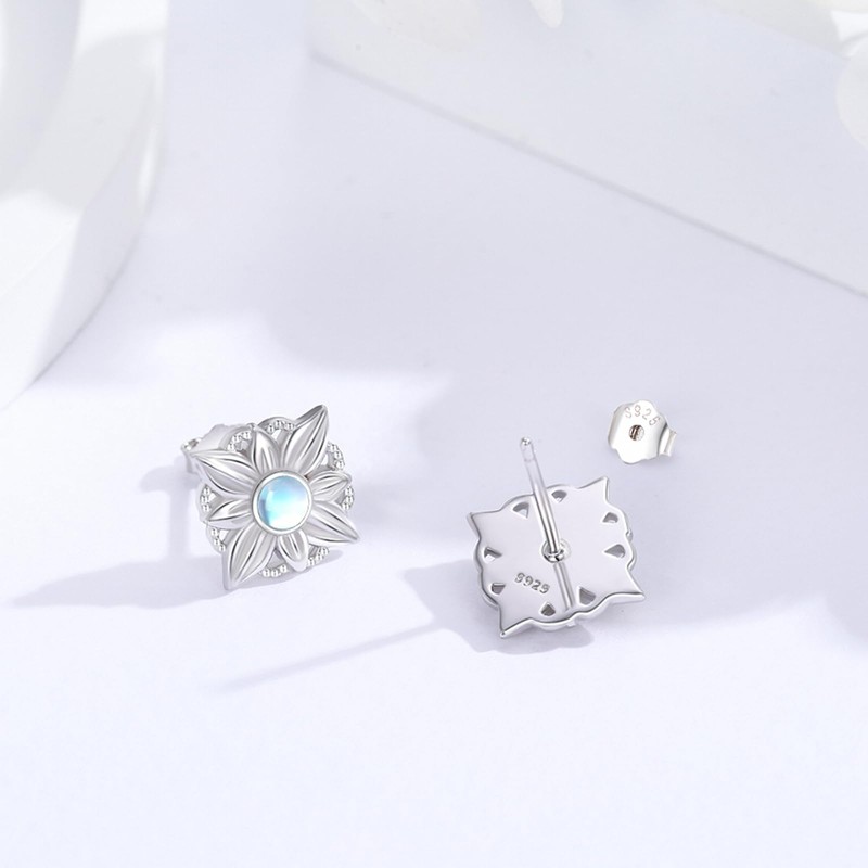 ABIGY Moonstone Stud Earrings 925 Sterling Silver Pointer Moonstone Stud Earrings Flower Moonstone Jewellery Stud Earrings for Women