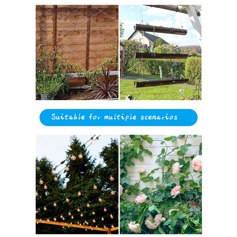 - Perfect Idea: This hanging wire is versatile, not only ideal for climbing plant, catenary, espalier, patio curtain, clothesline, garden fence wire teniosner, outdoor cable railing, but also for hanging light strings, curtains, clothes, photos