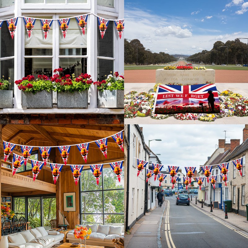 - 🌸WIDELY USING OF REMEMBRANCE DAY DECORATIONS : you can hang lest we forget flag and remembrance day bunting on garden, street, school, fireplace, window and etc, making sure you pass on the memory of those lost and the It’s our responsibility to ensure you do everything in your power now, and in the future to Remember the sacrifices made.