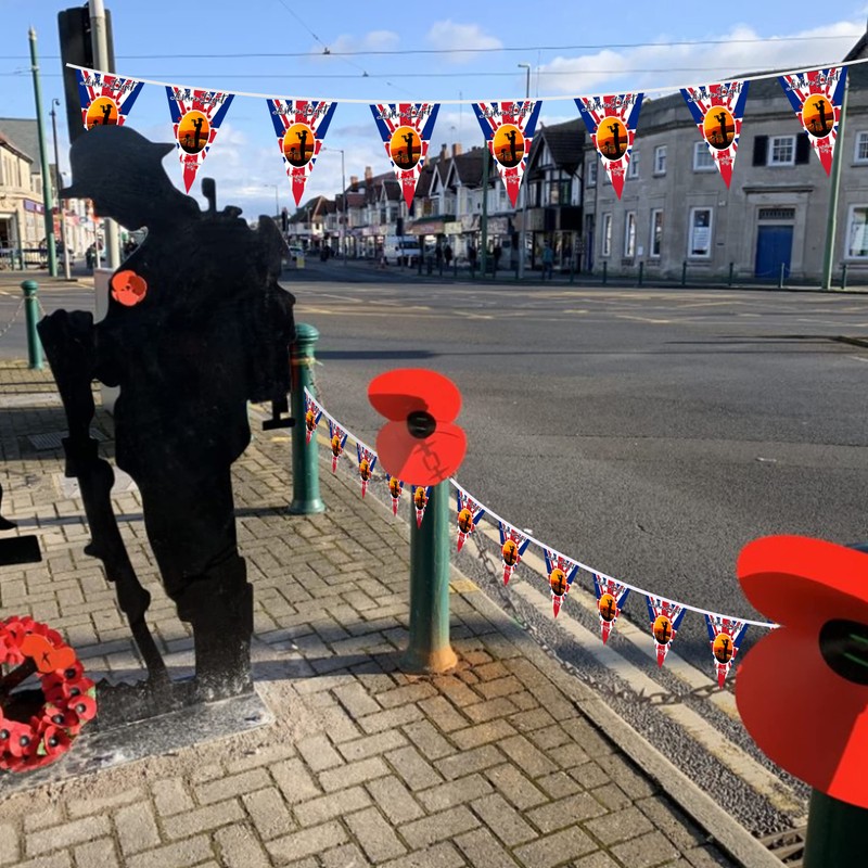 Our poppy day flags are printed single side, unique design looked very eye catching , bright coloured to stand out, not easy to fray. Lest we forget garland is suitable for indoors and outdoors during Remembrance Sunday. Definitely getting the most bang for your buck.